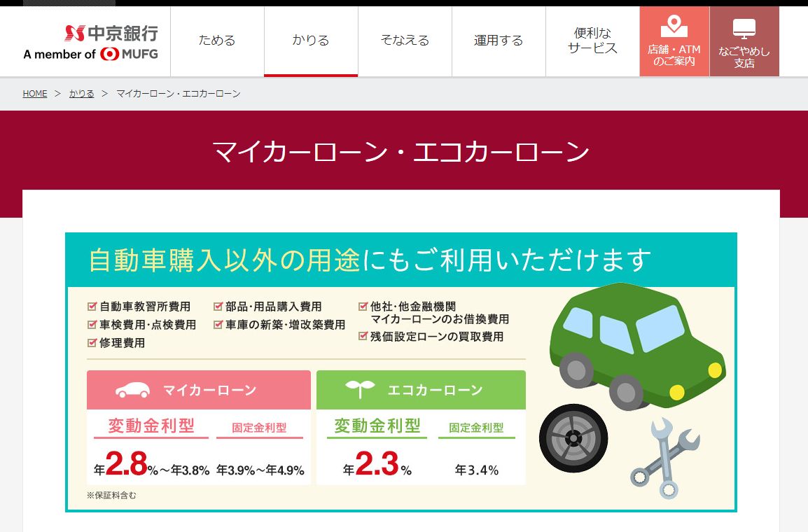 - 中京銀行マイカーローン