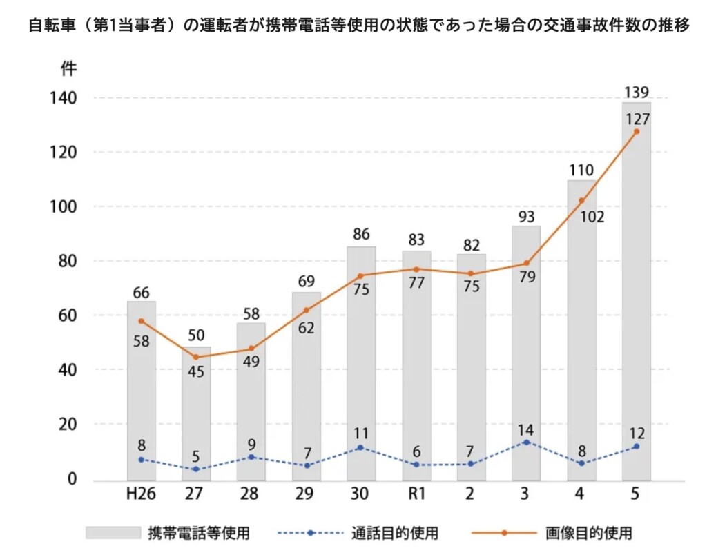 - 自転車・携帯電話使用の交通事故